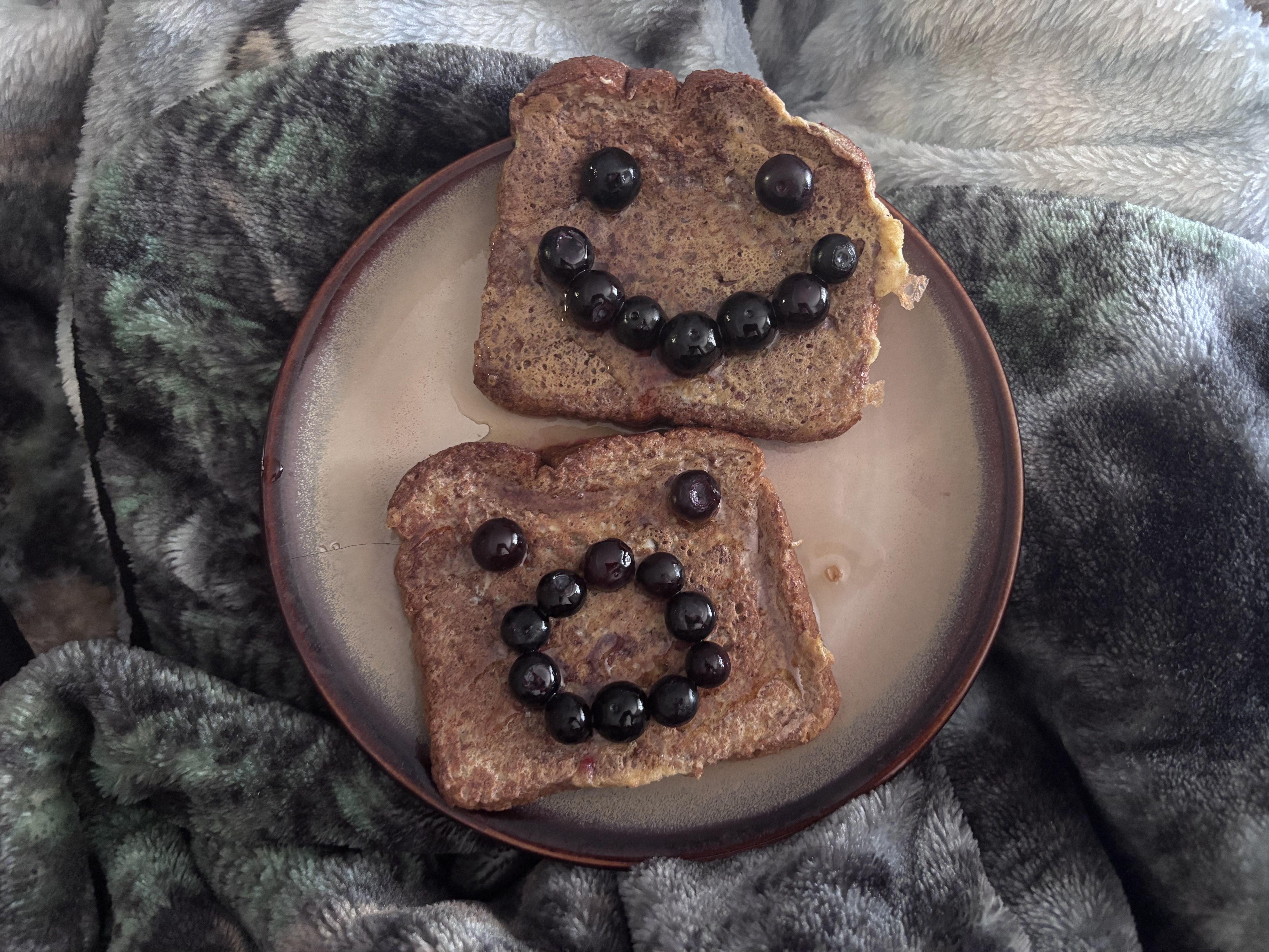 i don't have too much to say right now. i'm going to work on my little about section, but if you're for some reason reading this and don't already know me -- hi! i'm adz. i'll leave it here with a picture of the beautiful french toast my boyfriend made me this morning.